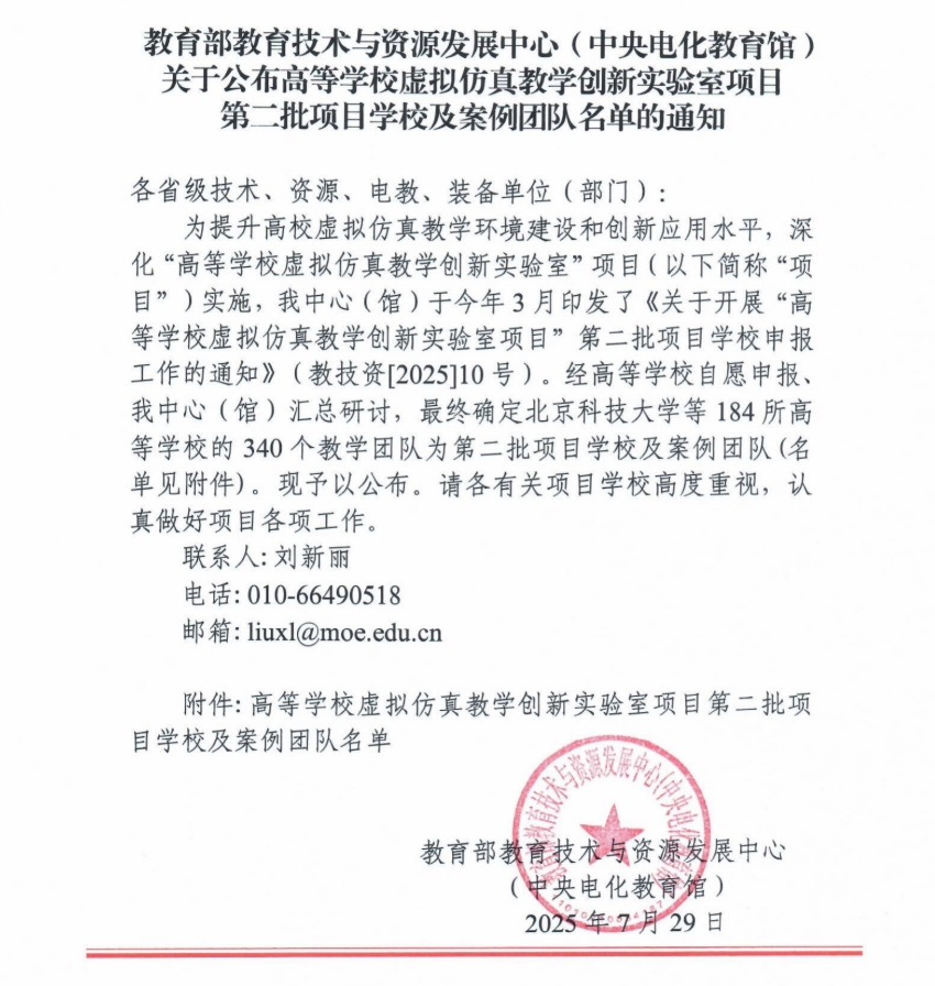 近日教育部教育技术与资源发展中心(中央电化教育馆)公布了高等学校虚拟仿真教学创新实验室项目第二批项目学校及案例团队名单,全国共有184所高等学校的340个教学团队入选。我校推荐的动物医学虚拟仿真教学中心、农用新材料虚拟仿真教学创新实验中心和草业科学虚拟仿真教学创新实验室均入选,学校教育部高等学校虚拟仿真教学创新实验室项目案例团队数量增至5个。